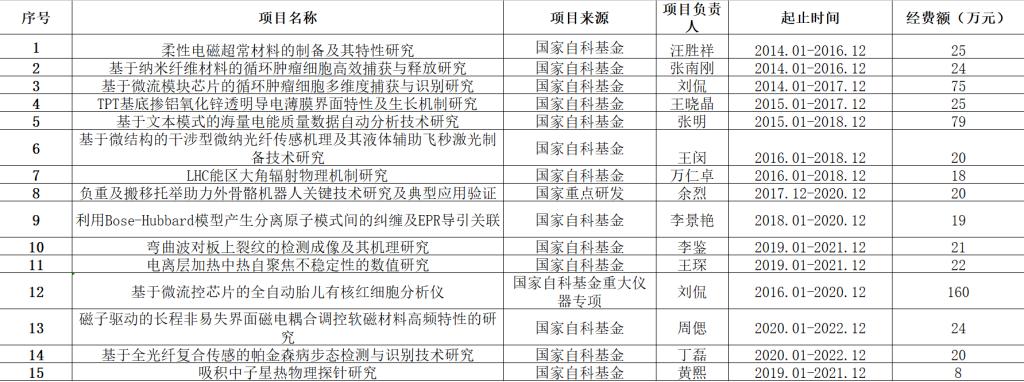 近年国家级项目立项
