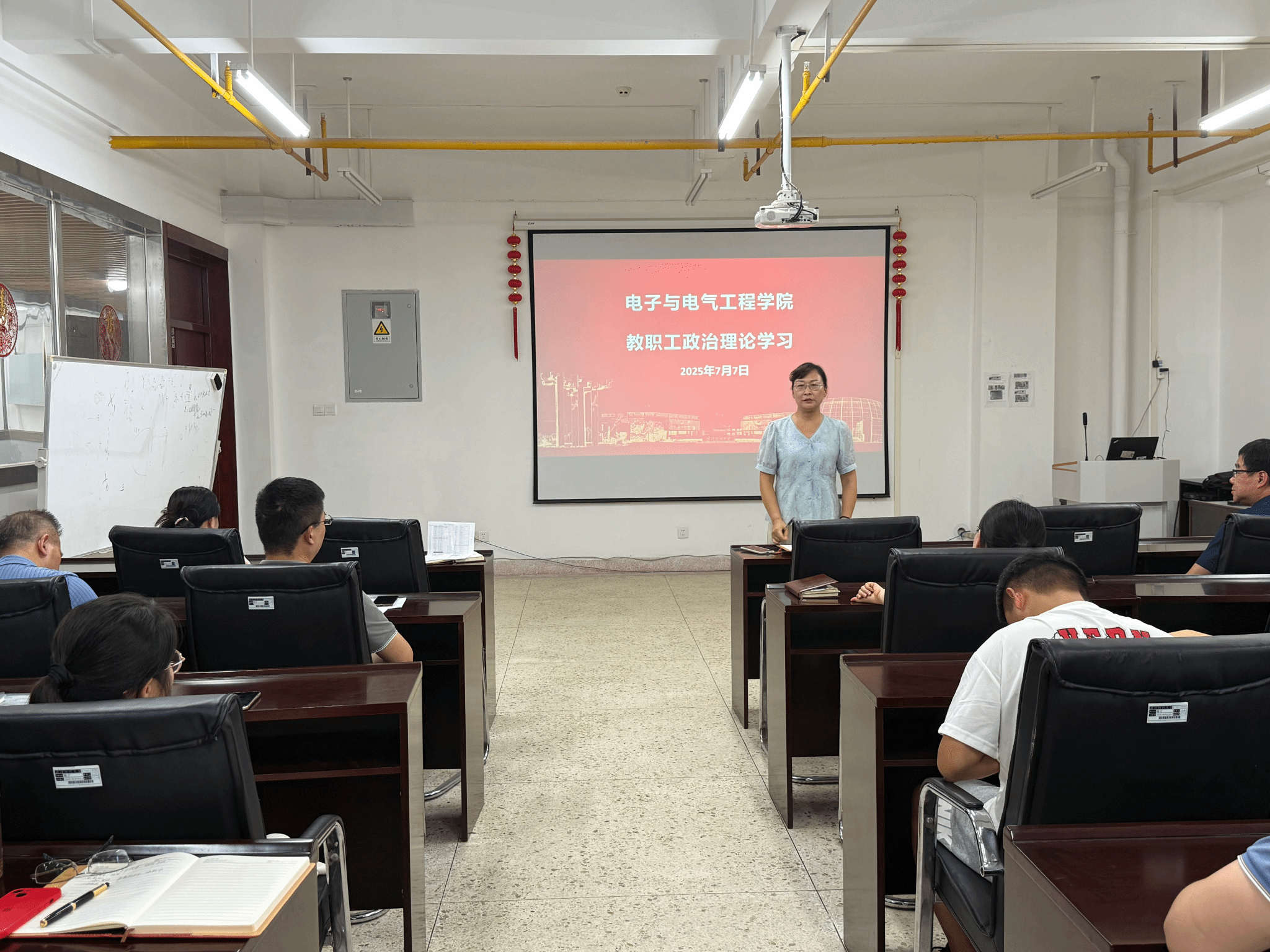 为深入学习贯彻习近平新时代中国特色社会主义思想,大力弘扬大别山精神、抗洪精神、抗疫精神,广泛践行社会主义核心价值观,7月7日下午,威廉希尔WilliamHill官方网站在崇真楼南楼A6013会议室组织全体教职工开展理论学习活动。本次会议由学院党委书记张红鑫主持,全体教职工参加,旨在引导教职工深刻领会这些伟大精神的内涵,并将其融入日常教育教学工作中。