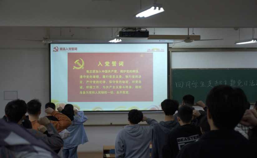 全体与会党员重温入党誓词,回顾庄严宣誓;重温党章党规,铭记初心使命,增强党员的责任感和使命感,以更加饱满的热情投身到学习生活中,切实发挥好共产党员的先锋模范作用。