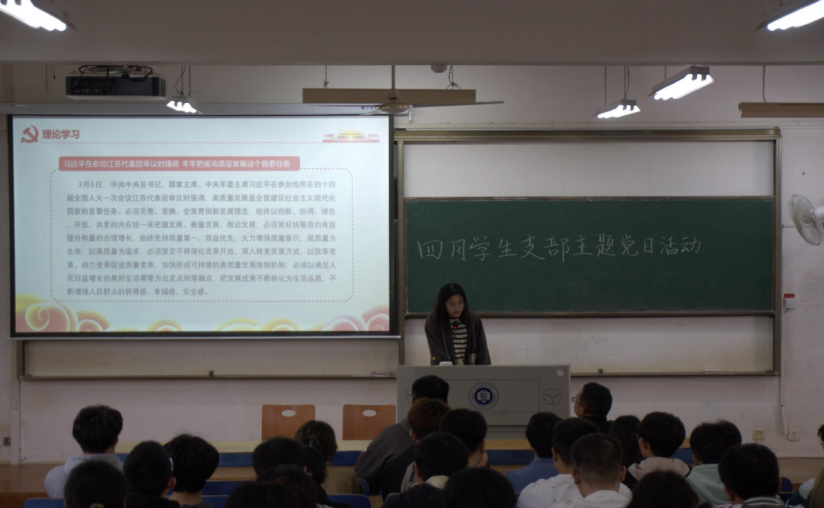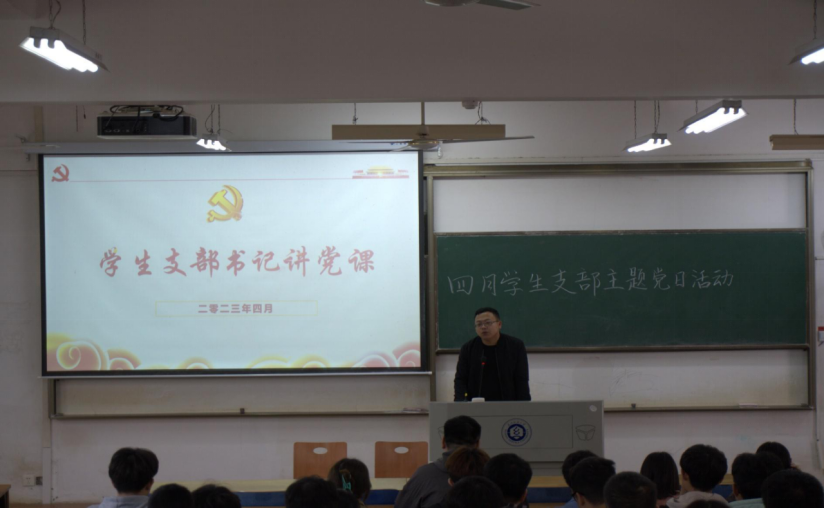 随后,电子学生党支部书记牟迪讲党课,他提出三点建议:一是党员同志要加强理论学习,养成终身学习的习惯,用先进理论指导实践;二是要在学业、生活、工作等方面严格要求自己,向优秀的党员学习,不断提升自我,用行动诠释党员的先进性;三是毕业生党员不管到哪里都要时刻牢记党员身份,履行使命担当,不能在思想上放松自己。