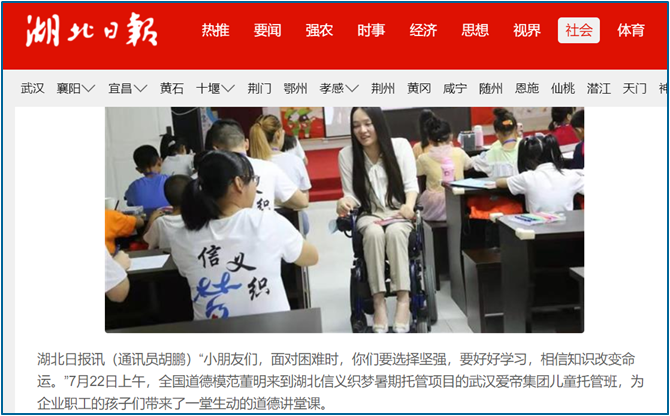 秉持初心,信义织梦支教走过第四年,与爱帝集团合作组建托管班,用真诚和友爱为孩子们送去欢笑和希望,得到了湖北日报等的广泛报道。立项校重点实践项目,深入四川汶川县水磨镇,调研震后乡村振兴和通信发展,受到中青网的关注。结对武汉盲童学校,用声音传递爱,给盲童的世界绘彩。“把最美纺大带回母校”寒假社会实践获二、三等奖各1项,3支线上支教服务队获得中国青年基金会立项。