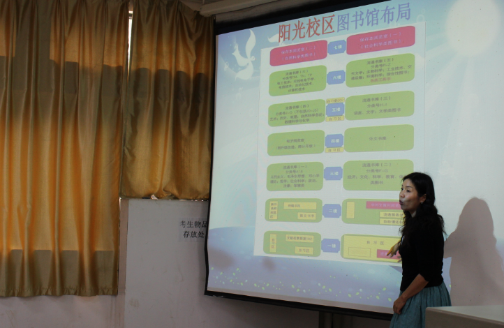 数间茅屋闲临水,一盏秋灯夜读书。图书馆是每个大学生必去的地方。本次图书馆入馆教育由校图书馆王金秀、肖红主持开展。会议伊始,蓝老师首先为新生们播放了校图书馆新生指南视频,活跃调动了现场氛围。借阅图书是大学生必备的一项技能。随后,为同学们介绍了校图书馆的发展现状、图书借阅流程和注意事项。丰富的藏书,成熟的设施,优雅的环境让23级新生惊艳不已。