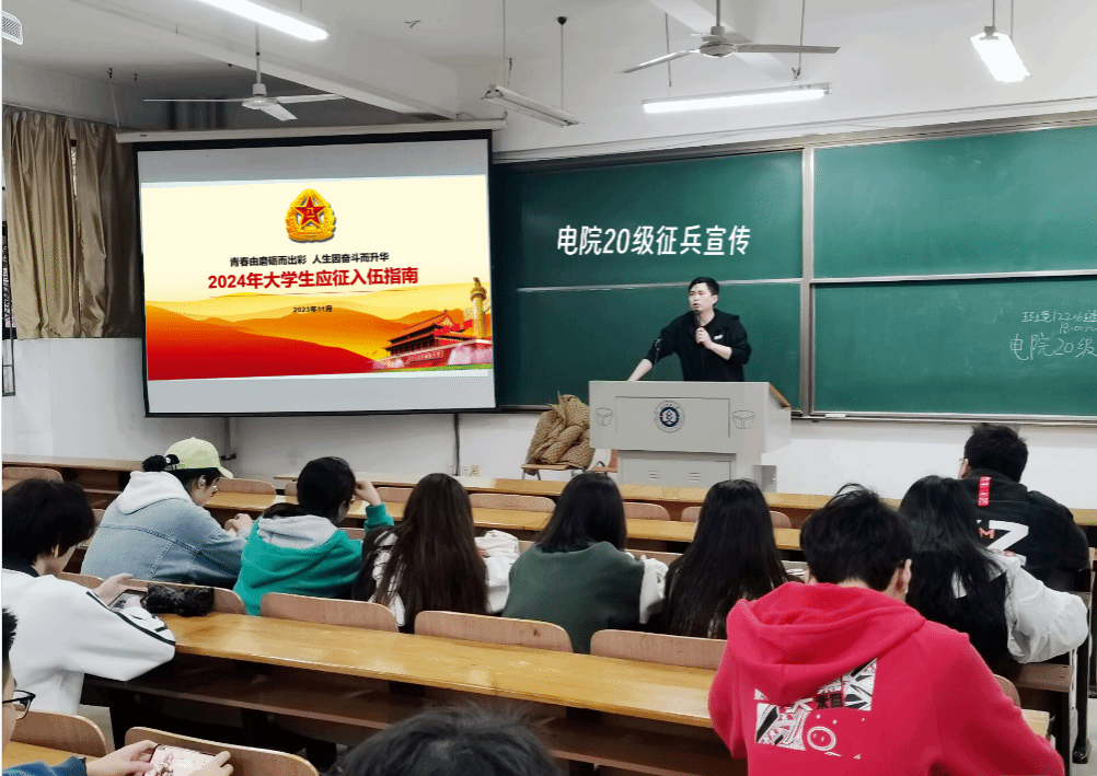 各年级辅导员分别从应征入伍基本条件、入伍流程、大学生参军特别优惠政策等方面向学生们进行了讲解,并强调了报名注意事项。2020级辅导员涂亚腾就毕业生当兵退役复学后考研、经济补贴方面进行了详细介绍;2021级辅导员石亚楠、冉晨,围绕我国征兵政策和参军流程展开,为大三学生们讲述了投身火热军营,献身国防事业的重要性,同时提醒计划参军入伍的同学们注意电信诈骗;2022级辅导员张朋龙讲解了大学生入伍的各种优势,鼓励青年学生投身于建设祖国国防的火热实践中;2023级辅导员陈珍通过晚点名的形式,向新生们宣讲了入伍基本政策,同时介绍了军营生活,激起了广大学生的热情,在宣讲会结束后,还通过线上与线下的方式向辅导员询问更多大学生入伍的相关情况。