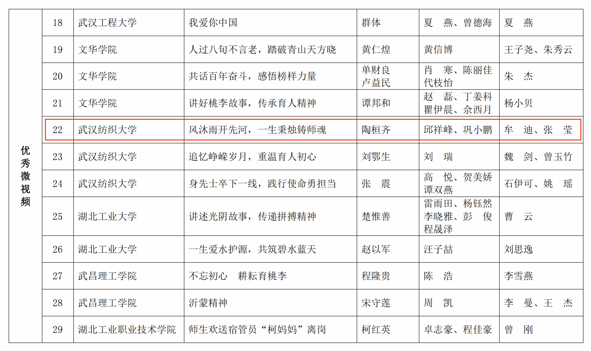 近日,湖北省教育厅关工委“读懂中国”活动作品评审结果揭晓,经过专家评审,我院报送的征文《栉风沐雨开先河,一生秉烛铸师魂》获评最佳征文,视频《栉风沐雨开先河,一生秉烛铸师魂》获评优秀微视频。