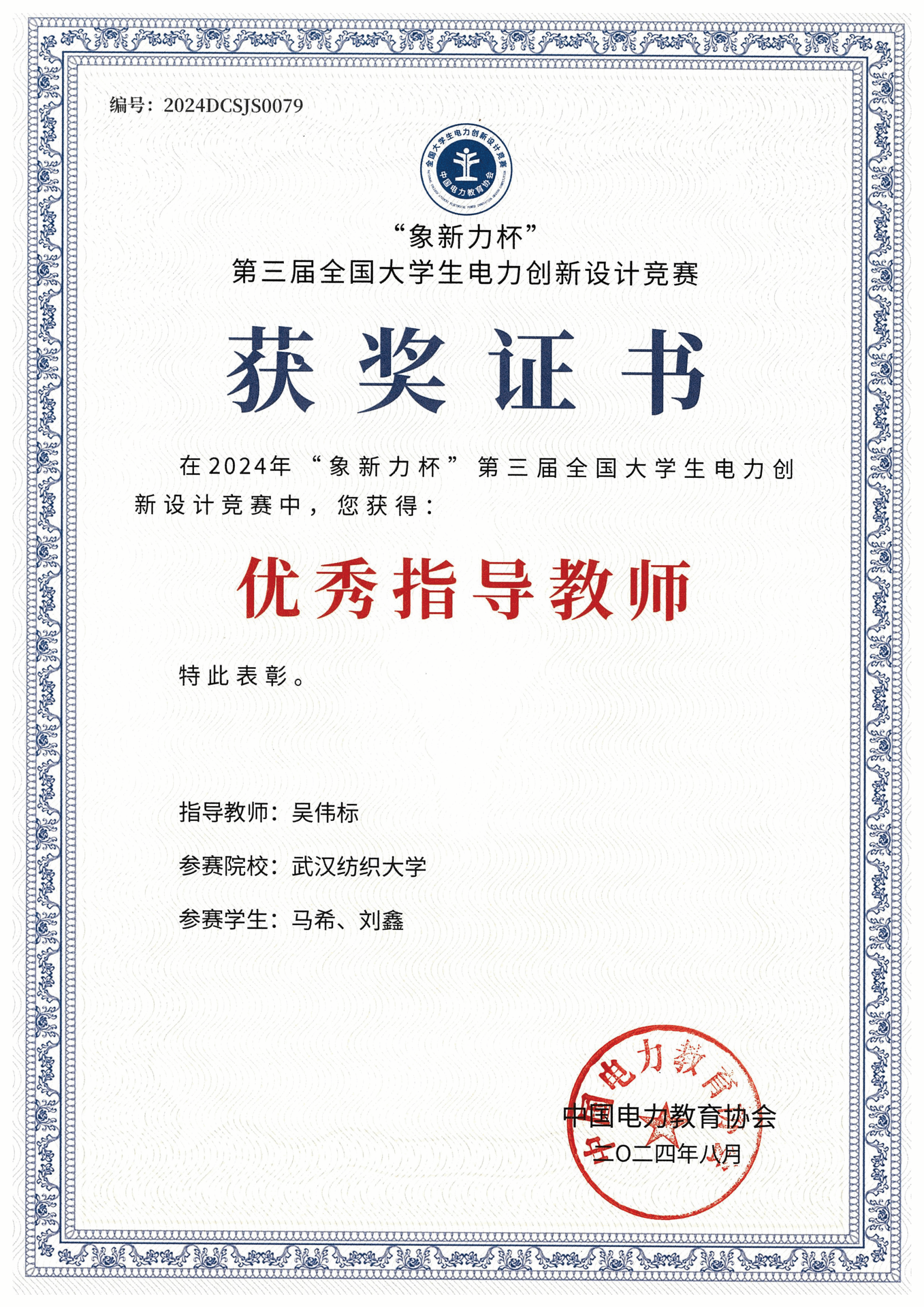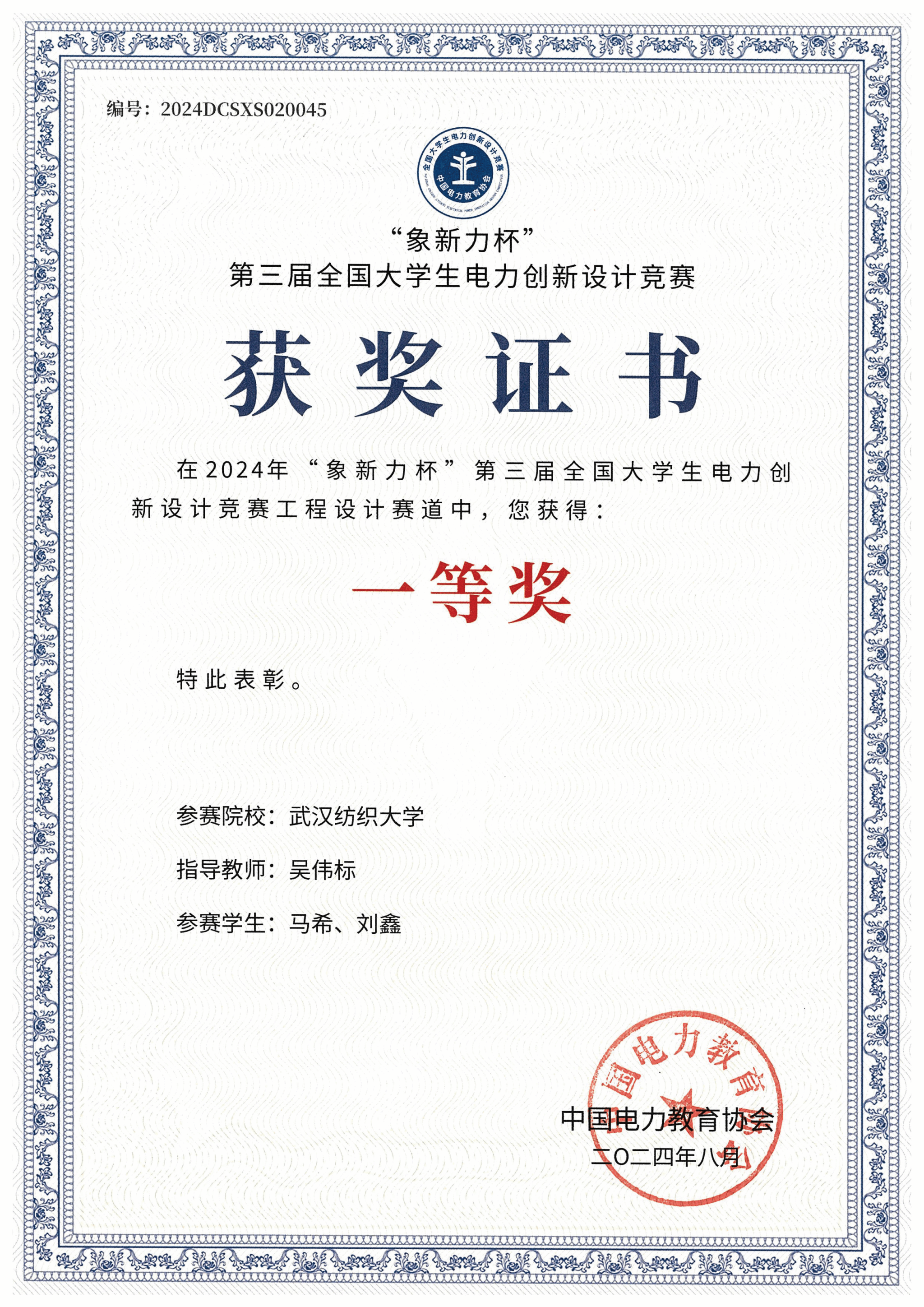 威廉希尔WilliamHill官方网站,williamhill官网积极组织师生参加,在韩谷静、张明、朱文强、胡梦月、吴伟标等电气系老师们的齐心协力指导下,学生们认真备赛、全力以赴,最终电气系本科生马希、刘鑫荣获全国一等奖1项,电气系教师吴伟标获得优秀指导老师奖。