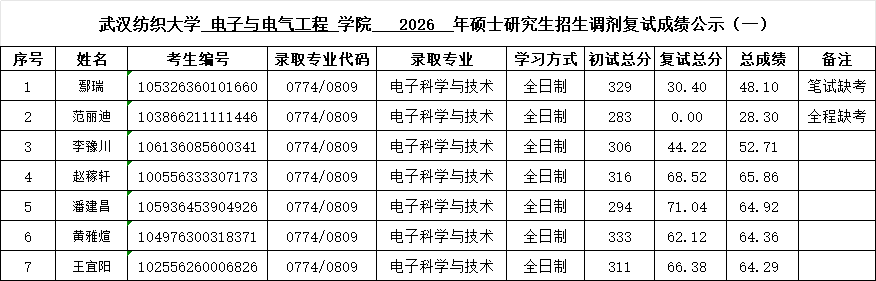 威廉希尔WilliamHill官方网站,williamhill官网2026年硕士研究生招生调剂复试成绩公示(一)