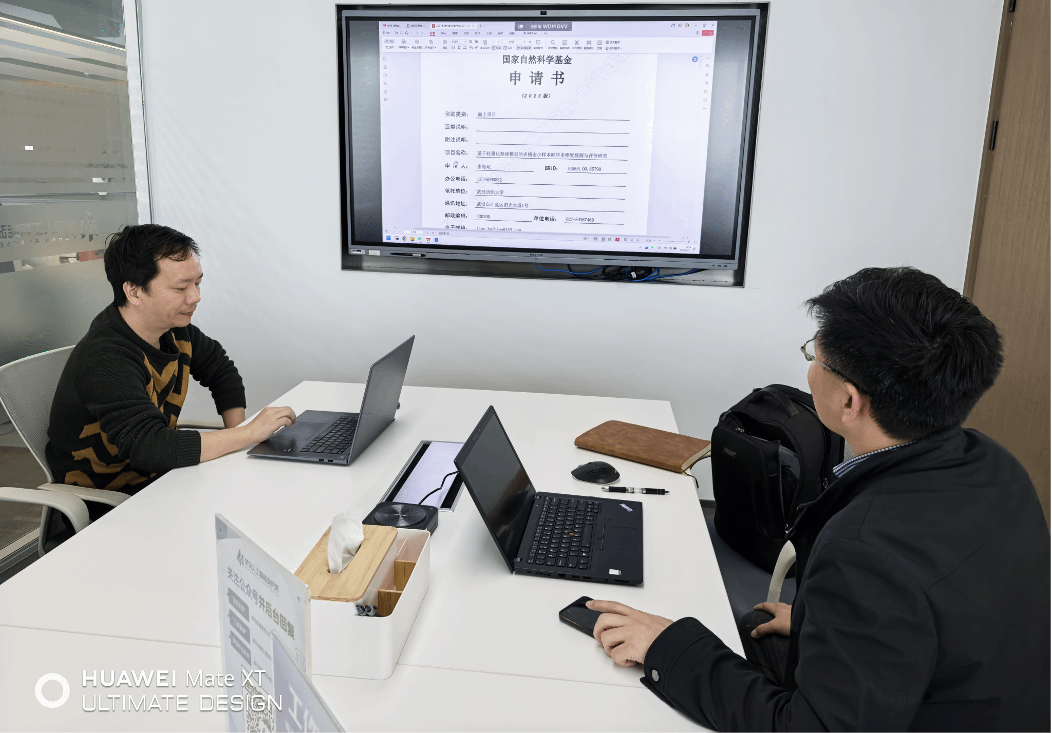 随后,廖海斌详细介绍了自己2025年国家自然科学基金申报情况,双方就申报书展开专题讨论。易东强调,面向国家AI战略的基金申报需兼顾理论突破与落地价值。建议通过对比Open AI、Meta等国际团队技术路径,凸显研究差异性与社会经济效益。少样本时序预测是工业智能化的‘卡脖子’问题,团队需明确轻量化基座模型与现有方法的差异化优势,通过预实验结果量化收敛速度、能耗比等关键指标。