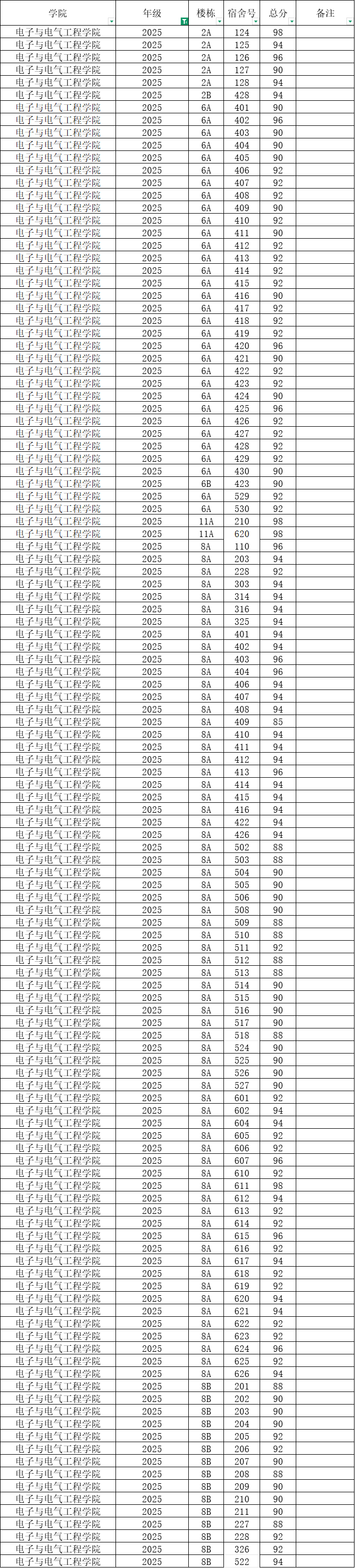 根据统一安排,现将学院本学期第5周寝室公检情况公布如下
