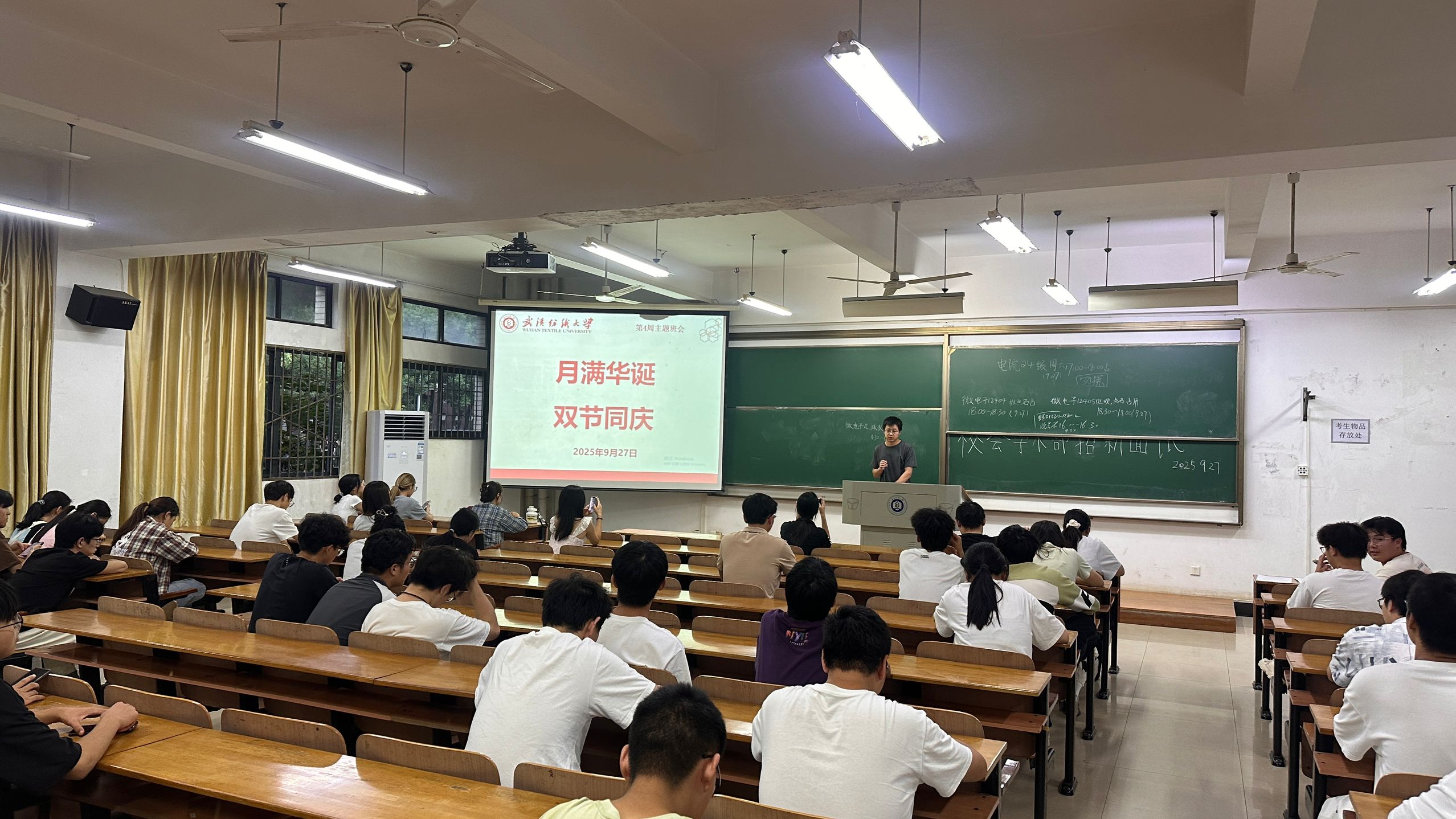 辅导员结合国庆的由来、意义以及祖国的伟大发展成就——“十四五”成绩单,带领同学们更深切地体会这片辽阔土地的繁荣昌盛,对历史致敬,对未来期许,带着归属感与自豪感乘着祖国坚定而铿锵的发展步伐向上向善。同时,辅导员通过图文并茂的形式向同学们介绍了中秋节的来历、传说、习俗以及意义。此外,辅导员针对双节小长假期间出行,防诈、旅游、宿舍、网络方面各类安全隐患展开系统讲解,倡导同学们文明出行。
