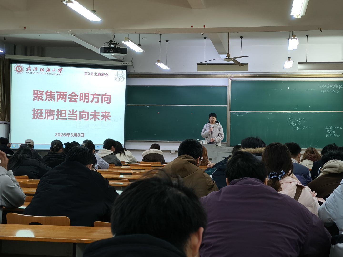 3月8日,威廉希尔WilliamHill官方网站召开第二周主题班会,以“聚焦两会明方向 挺膺担当向未来”为核心,引导青年学子读懂两会内涵、锚定成长方向,将个人理想融入国家发展大局。