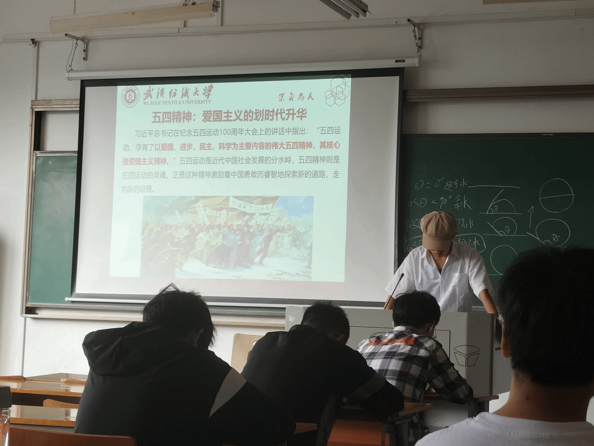 班会主要以“厚植家国情怀,激昂青春年华”为题,向同学们详细介绍了五四精神的背景、内涵以及其价值蕴涵和其进步所在,同时还有习近平总书记对于当代青年的期望。以爱国、进步、民主、科学为主要内容的伟大五四精神,其核心是爱国主义精神。希望同学们在传承和弘扬五四精神的同时,能展现新时代青年的风采,能够铭记历史、珍惜时光,以更加饱满的热情和更加务实的行动进行学习,为实现中华民族伟大复兴的中国梦贡献青春力量。