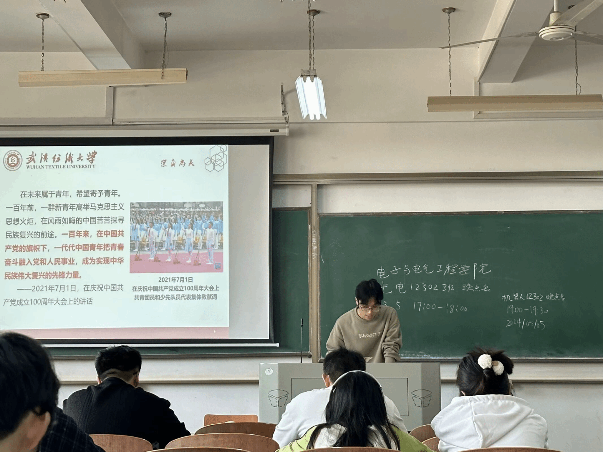 班会还向同学们介绍了我校2023年度共青团“五四评优”优秀教师和学生。青年是整个社会力量中最积极,最有生气的力量,广大青年应牢记习近平总书记的教诲,同学们也应通过在会上对优秀青年的介绍,理解奋斗的意义,向着更好的自己迈进。