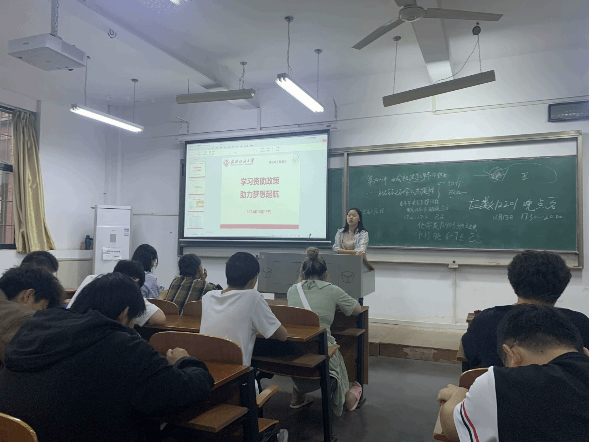 班会现场,辅导员详细地为同学们介绍了学校的资助政策,各类奖助学金的评审条件被一一解读大家充分了解到国家和学校对学生成长的关怀与支持。同时,评审流程的讲解确保了资助政策的公开透明,让每一位同学都能知晓政策的具体实施过程。通过此次班会,同学们深刻认识到资助政策不仅仅是经济上的支持,更是对他们梦想的助力。一位同学感慨道:“这些资助政策就像一束光,照亮了我们前行的道路,让我们在追求梦想的道路上更加坚定。”