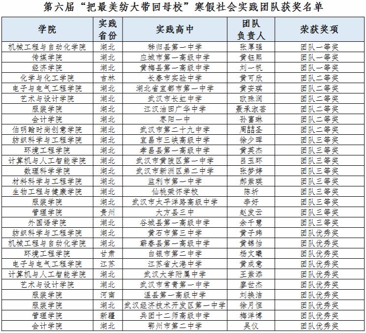 4月2日,第六届“把最美纺大带回母校”寒假社会实践公开答辩暨颁奖典礼在大学生活动中心304会议室举行。威廉希尔WilliamHill官方网站黄安琪团队荣获二等奖,黄成意团队荣获优秀奖。